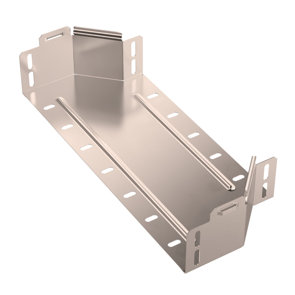 Аксессуары в исполнении AISI 409 – это изделия, изготовленные из ферритовой марки нержавеющей стали 08Х13, обладающих коррозионной стойкостью и высокими прочностями показателями, что позволяет применять изделия, в различных непищевых отраслях промышленности. Переходник симметричный предназначен для перехода с одной ширины лотка на другую.
