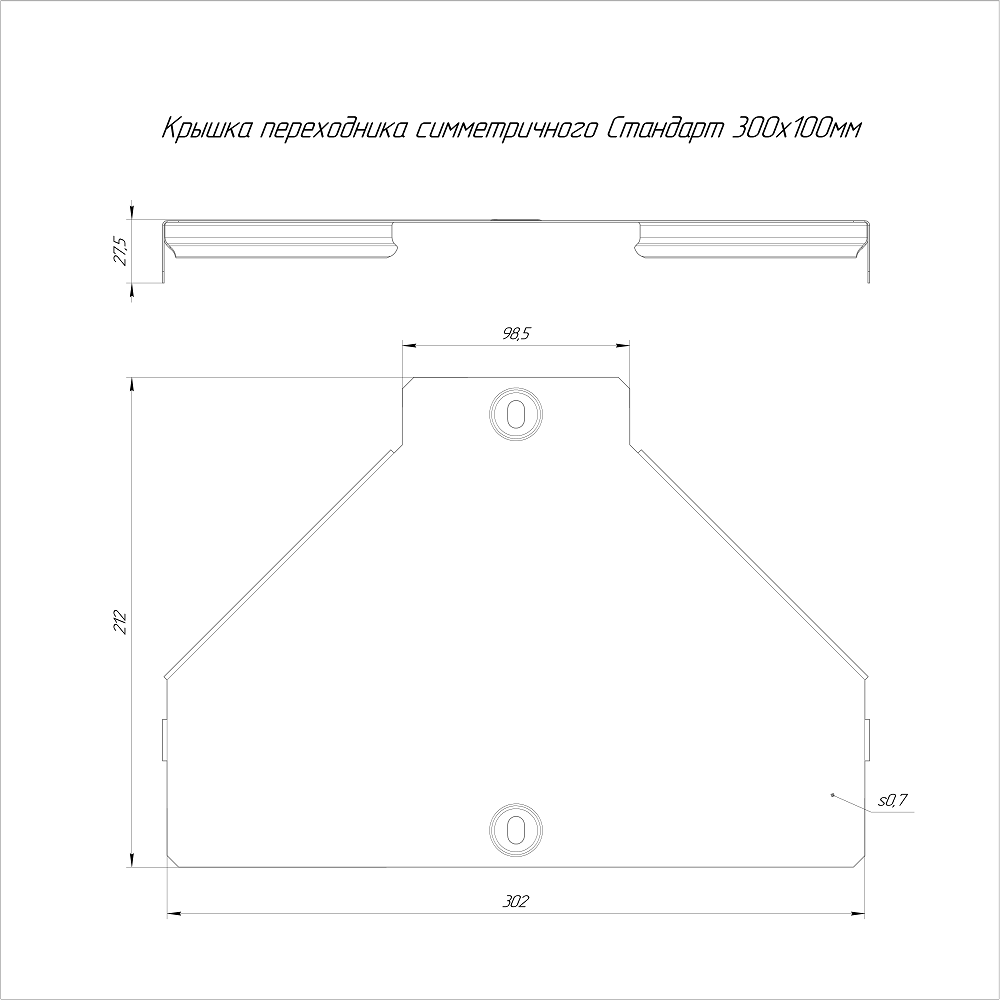 PR16.6104 крышка переходника симметричного Стандарт INOX (AISI 409) 300х100 Промрукав; нерж.сталь; -150..600°C; RAL 7046; толщина 0,7 мм; 0,299 кг.