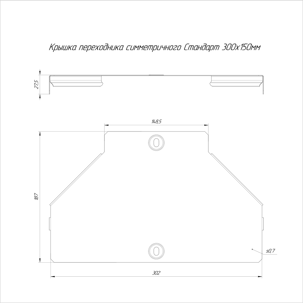 PR16.6105 крышка переходника симметричного Стандарт INOX (AISI 409) 300х150 Промрукав; нерж.сталь; -150..600°C; RAL 7046; толщина 0,7 мм; 0,282 кг.