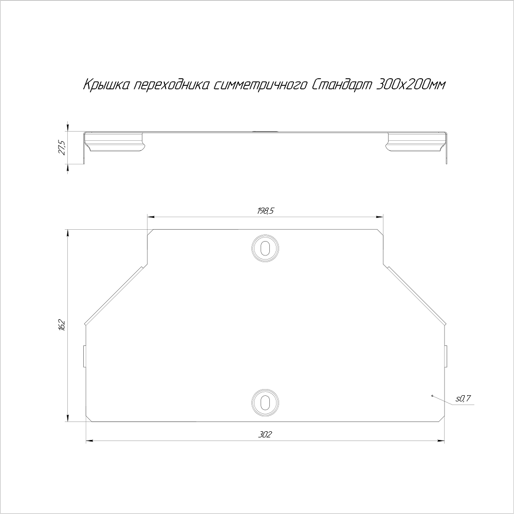 PR16.6106 крышка переходника симметричного Стандарт INOX (AISI 409) 300х200 Промрукав; нерж.сталь; -150..600°C; RAL 7046; толщина 0,7 мм; 0,259 кг.