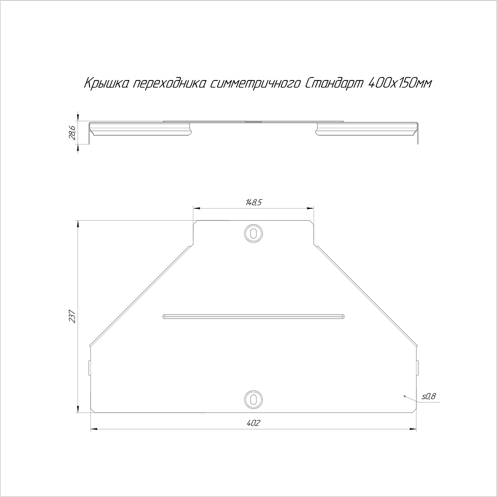 PR16.6107 крышка переходника симметричного Стандарт INOX (AISI 409) 400х150 Промрукав; нерж.сталь; -150..600°C; RAL 7046; толщина 0,8 мм; 0,504 кг.