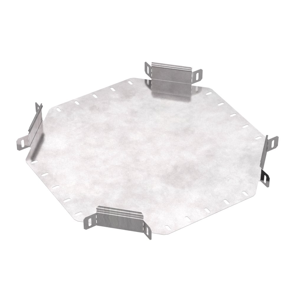 Аксессуары изготовленные из стали с защитным покрытием по методу Сендзимира – это изделия, на которых защитное цинковое покрытие было нанесено на листовую сталь перед изготовлением. Толщина защитного покрытия варьируется от 10 до 22мкм. Климатическое исполнение изделий УХЛ2, что предусматривают эксплуатацию в помещении и под навесом, при температуре эксплуатации от -80 до +150°С. Ответвитель X-образный предназначен для разветвления кабельных трасс в горизонтальном направлении, для перфорированных и глухих лотков. В комплект не входит крышка.