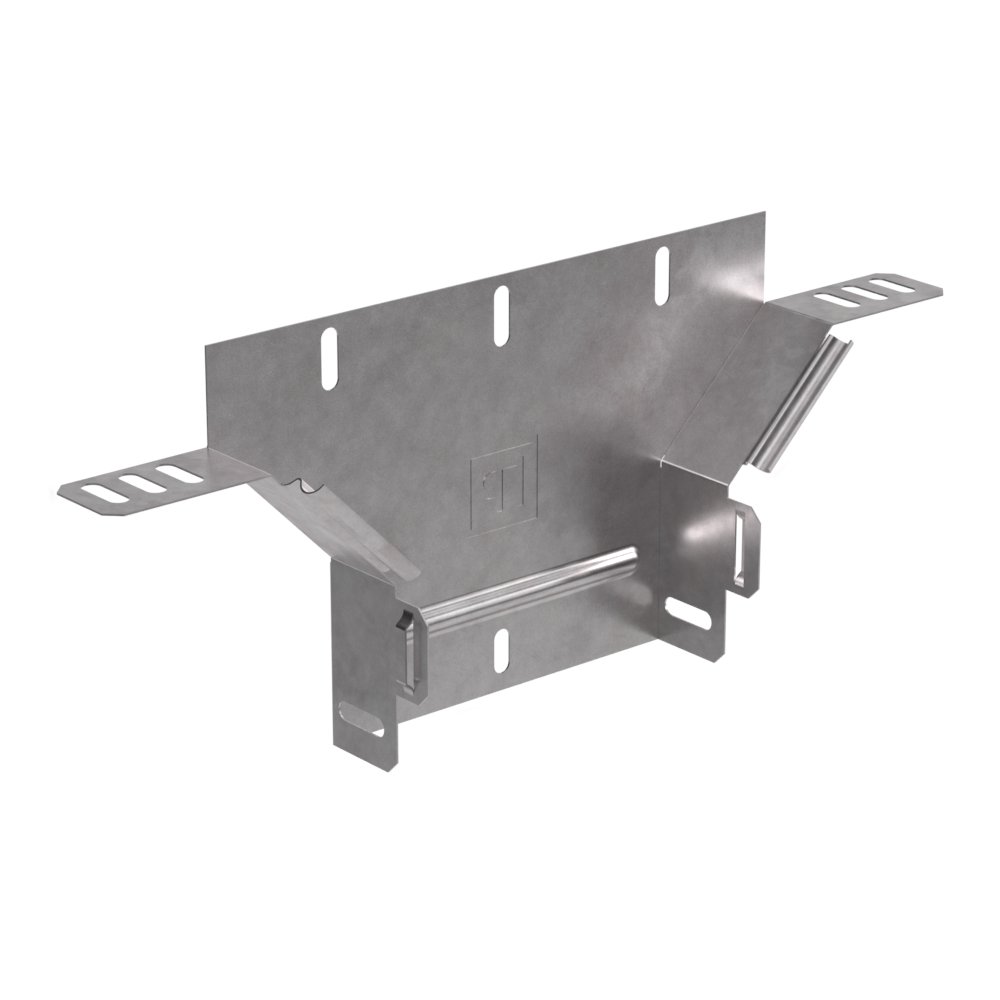 Аксессуары изготовленные из стали с защитным покрытием по методу Сендзимира – это изделия, на которых защитное цинковое покрытие было нанесено на листовую сталь перед изготовлением. Толщина защитного покрытия варьируется от 10 до 22мкм. Климатическое исполнение изделий УХЛ2, что предусматривают эксплуатацию в помещении и под навесом, при температуре эксплуатации от -80 до +150°С. Обеспечивает вертикальное ответвление горизонтальной кабеленесущий линии, состоящей из лотков металлических.В комплект не входит крышка.