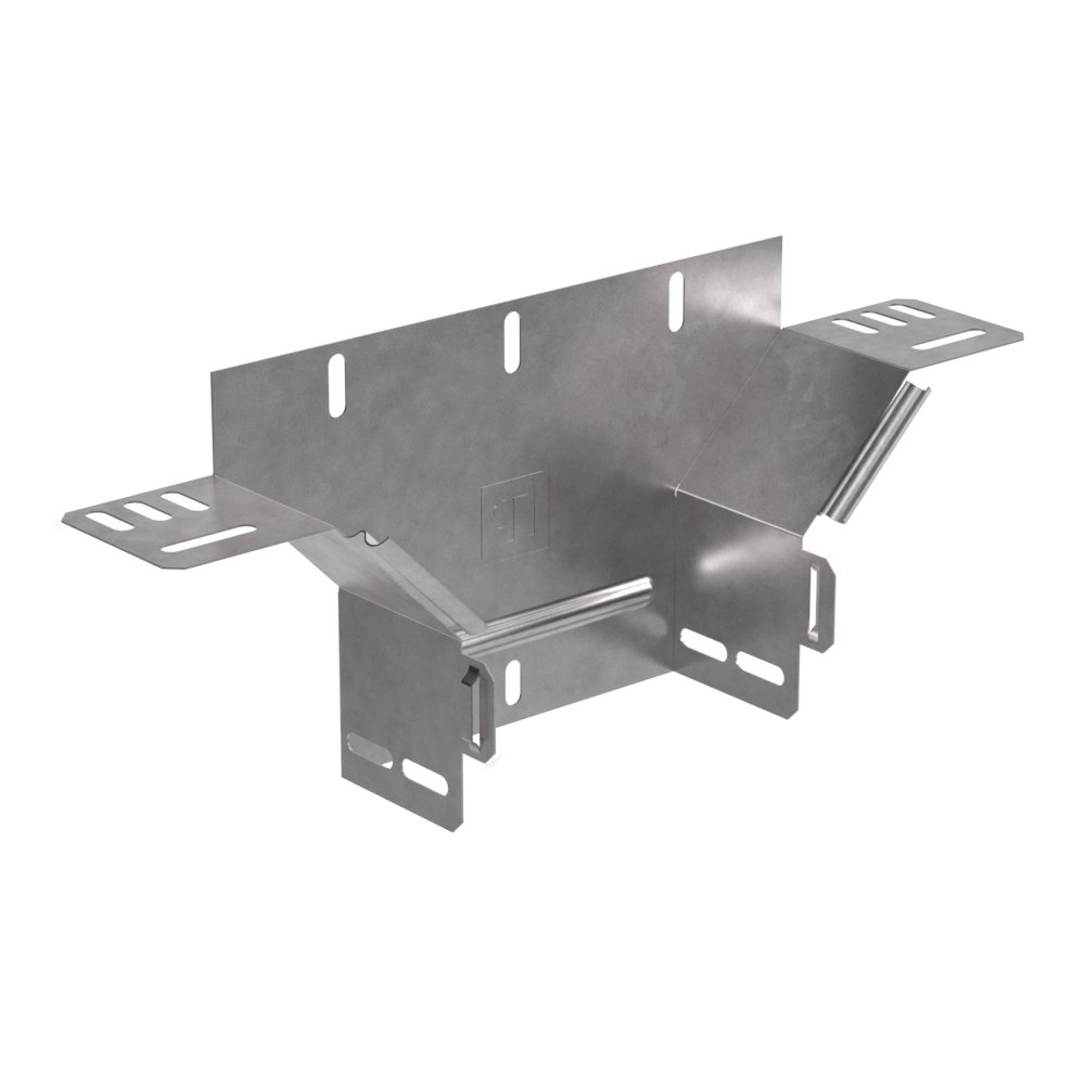Аксессуары изготовленные из стали с защитным покрытием по методу Сендзимира – это изделия, на которых защитное цинковое покрытие было нанесено на листовую сталь перед изготовлением. Толщина защитного покрытия варьируется от 10 до 22мкм. Климатическое исполнение изделий УХЛ2, что предусматривают эксплуатацию в помещении и под навесом, при температуре эксплуатации от -80 до +150°С. Обеспечивает вертикальное ответвление горизонтальной кабеленесущий линии, состоящей из лотков металлических.В комплект не входит крышка.