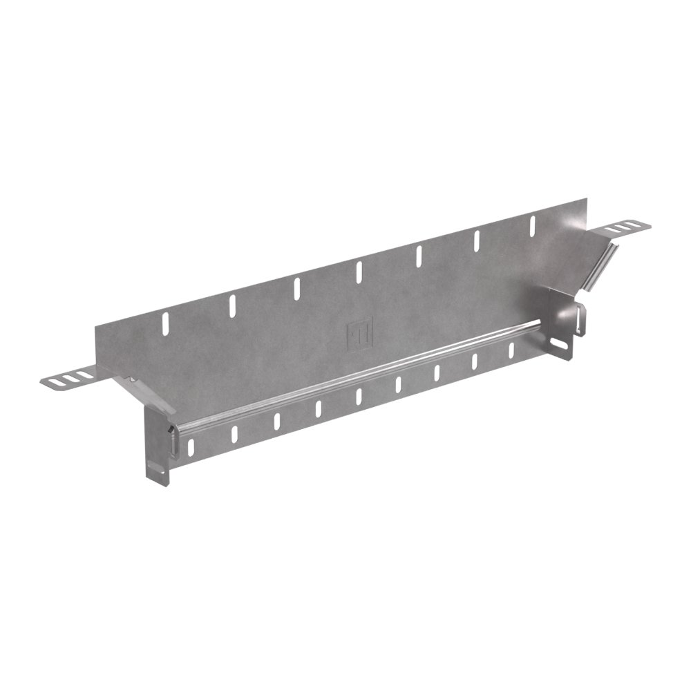 Аксессуары изготовленные из стали с защитным покрытием по методу Сендзимира – это изделия, на которых защитное цинковое покрытие было нанесено на листовую сталь перед изготовлением. Толщина защитного покрытия варьируется от 10 до 22мкм. Климатическое исполнение изделий УХЛ2, что предусматривают эксплуатацию в помещении и под навесом, при температуре эксплуатации от -80 до +150°С. Обеспечивает вертикальное ответвление горизонтальной кабеленесущий линии, состоящей из лотков металлических.В комплект не входит крышка.