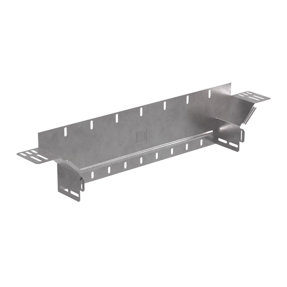 Аксессуары изготовленные из стали с защитным покрытием по методу Сендзимира – это изделия, на которых защитное цинковое покрытие было нанесено на листовую сталь перед изготовлением. Толщина защитного покрытия варьируется от 10 до 22мкм. Климатическое исполнение изделий УХЛ2, что предусматривают эксплуатацию в помещении и под навесом, при температуре эксплуатации от -80 до +150°С. Обеспечивает вертикальное ответвление горизонтальной кабеленесущий линии, состоящей из лотков металлических.В комплект не входит крышка.
