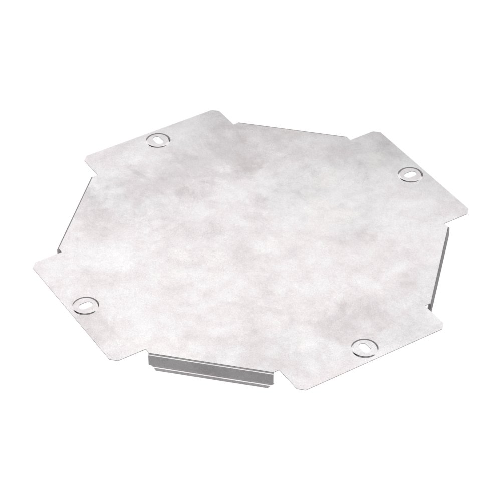 Крышки аксессуаров изготовленные из стали с защитным покрытием по методу Сендзимира – это изделия, на которых защитное цинковое покрытие было нанесено на листовую сталь перед изготовлением. Толщина защитного покрытия варьируется от 10 до 22мкм. Климатическое исполнение изделий УХЛ2, что предусматривают эксплуатацию в помещении и под навесом, при температуре эксплуатации от -80 до +150°С. Крышка ответвителя X-образного предназначена для обеспечения дополнительной защиты кабельной продукции от механических повреждений, пыли и влаги. Совместима с крышками лотков. Крышка фиксируется на защелках, по необходимости соединяется винтами с крышками лотка.