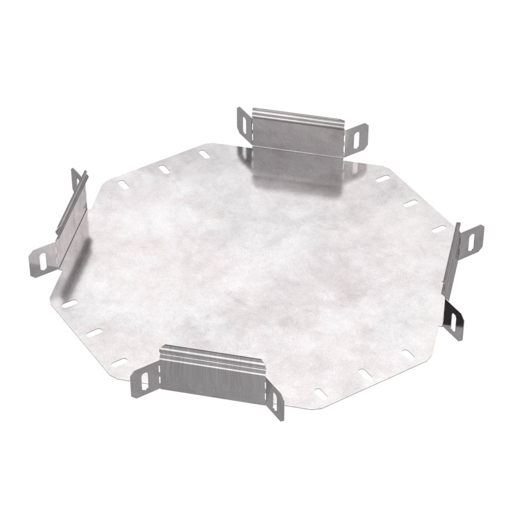 Аксессуары изготовленные из стали с защитным покрытием по методу Сендзимира – это изделия, на которых защитное цинковое покрытие было нанесено на листовую сталь перед изготовлением. Толщина защитного покрытия варьируется от 10 до 22мкм. Климатическое исполнение изделий УХЛ2, что предусматривают эксплуатацию в помещении и под навесом, при температуре эксплуатации от -80 до +150°С. Ответвитель X-образный предназначен для разветвления кабельных трасс в горизонтальном направлении, для перфорированных и глухих лотков. В комплект не входит крышка.