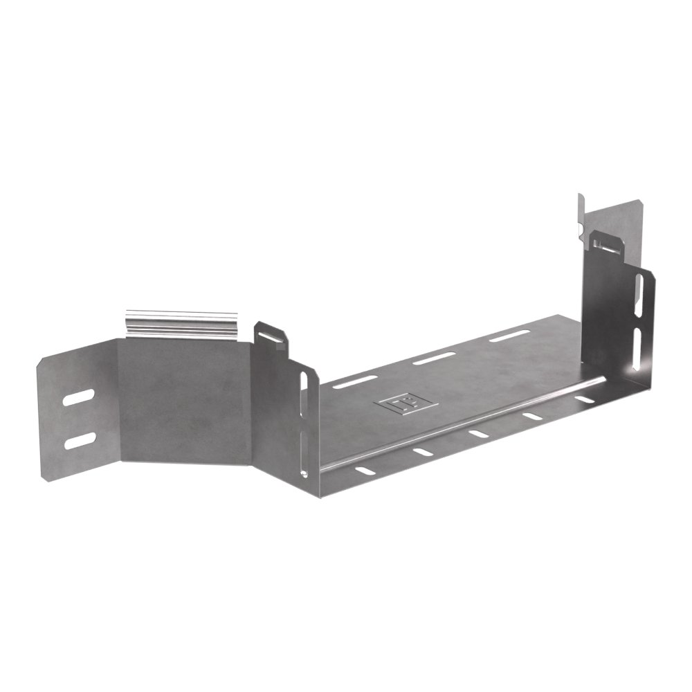 Аксессуары изготовленные из стали с защитным покрытием по методу Сендзимира – это изделия, на которых защитное цинковое покрытие было нанесено на листовую сталь перед изготовлением. Толщина защитного покрытия варьируется от 10 до 22мкм. Климатическое исполнение изделий УХЛ2, что предусматривают эксплуатацию в помещении и под навесом, при температуре эксплуатации от -80 до +150°С. Ответвитель обеспечивает горизонтальное ответвление кабеленесущий линии из боковой стенки лотка, под углом 90 градусов. В комплект не входит крышка.