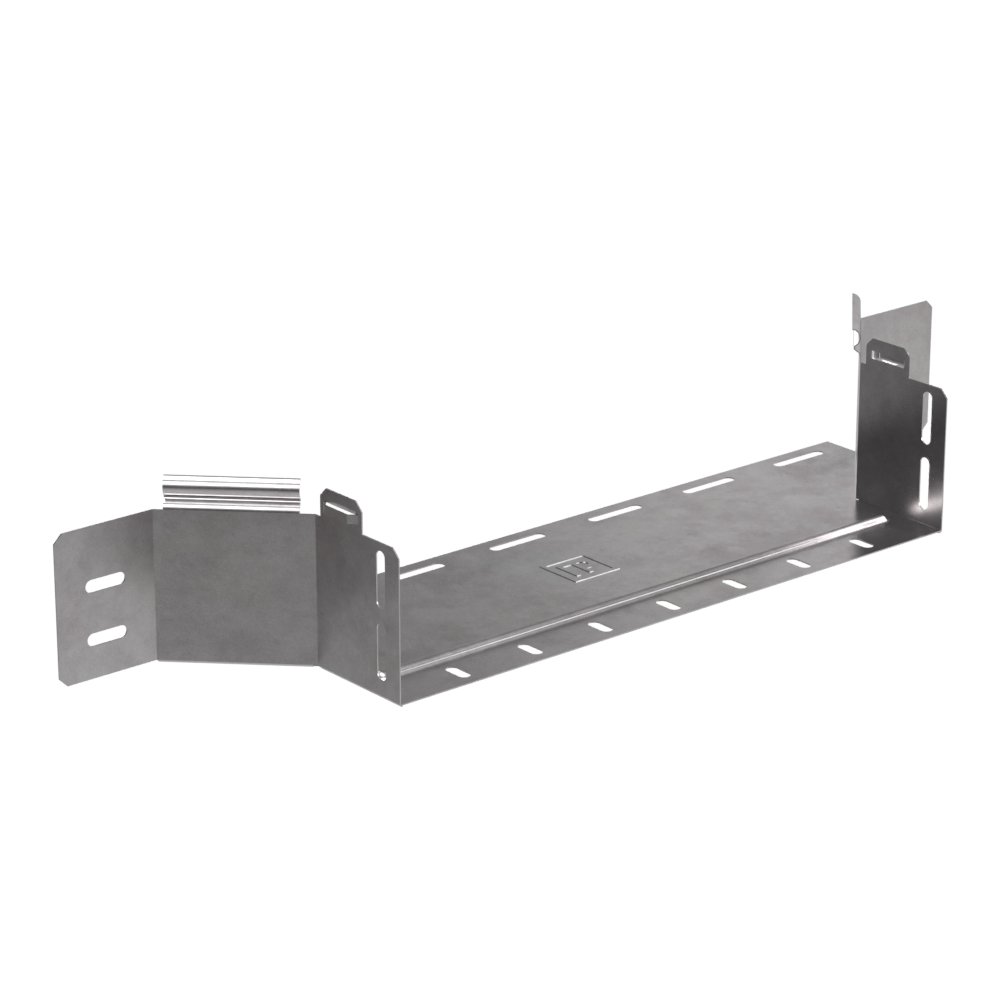 Аксессуары изготовленные из стали с защитным покрытием по методу Сендзимира – это изделия, на которых защитное цинковое покрытие было нанесено на листовую сталь перед изготовлением. Толщина защитного покрытия варьируется от 10 до 22мкм. Климатическое исполнение изделий УХЛ2, что предусматривают эксплуатацию в помещении и под навесом, при температуре эксплуатации от -80 до +150°С. Ответвитель обеспечивает горизонтальное ответвление кабеленесущий линии из боковой стенки лотка, под углом 90 градусов. В комплект не входит крышка.