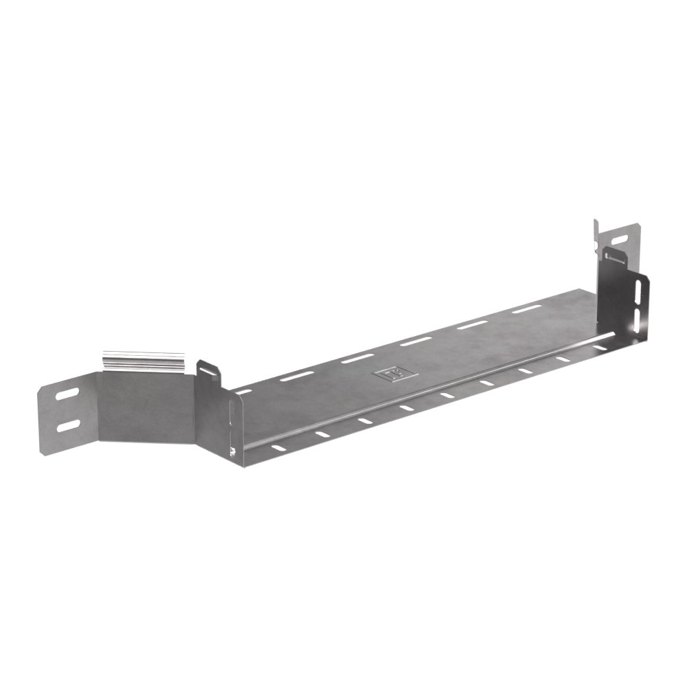 Аксессуары изготовленные из стали с защитным покрытием по методу Сендзимира – это изделия, на которых защитное цинковое покрытие было нанесено на листовую сталь перед изготовлением. Толщина защитного покрытия варьируется от 10 до 22мкм. Климатическое исполнение изделий УХЛ2, что предусматривают эксплуатацию в помещении и под навесом, при температуре эксплуатации от -80 до +150°С. Ответвитель обеспечивает горизонтальное ответвление кабеленесущий линии из боковой стенки лотка, под углом 90 градусов. В комплект не входит крышка.