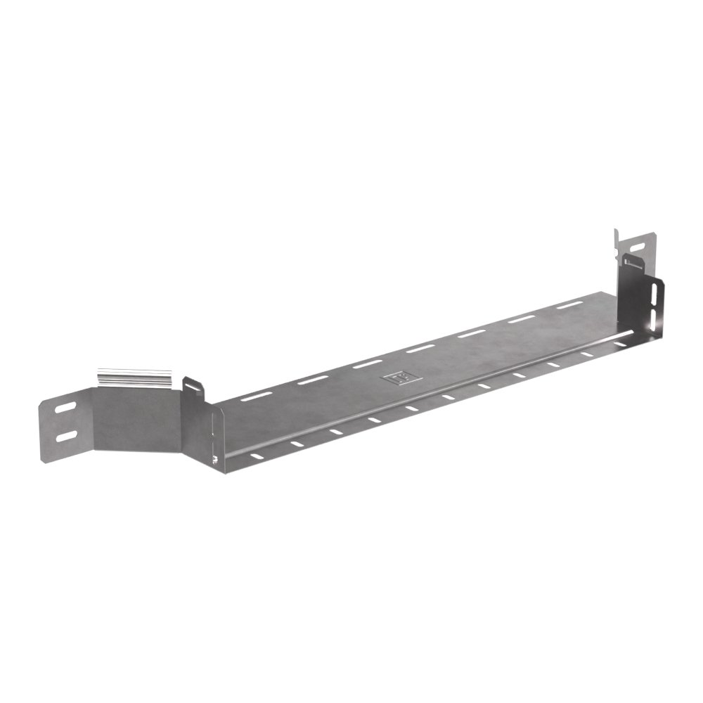 Аксессуары изготовленные из стали с защитным покрытием по методу Сендзимира – это изделия, на которых защитное цинковое покрытие было нанесено на листовую сталь перед изготовлением. Толщина защитного покрытия варьируется от 10 до 22мкм. Климатическое исполнение изделий УХЛ2, что предусматривают эксплуатацию в помещении и под навесом, при температуре эксплуатации от -80 до +150°С. Ответвитель обеспечивает горизонтальное ответвление кабеленесущий линии из боковой стенки лотка, под углом 90 градусов. В комплект не входит крышка.