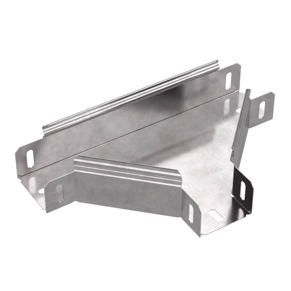 Аксессуары изготовленные из стали с защитным покрытием по методу Сендзимира – это изделия, на которых защитное цинковое покрытие было нанесено на листовую сталь перед изготовлением. Толщина защитного покрытия варьируется от 10 до 22мкм. Климатическое исполнение изделий УХЛ2, что предусматривают эксплуатацию в помещении и под навесом, при температуре эксплуатации от -80 до +150°С. Ответвитель Т-образный предназначен для разветвления кабельных трасс в горизонтальном направлении, для перфорированных и глухих лотков. В комплект не входит крышка.