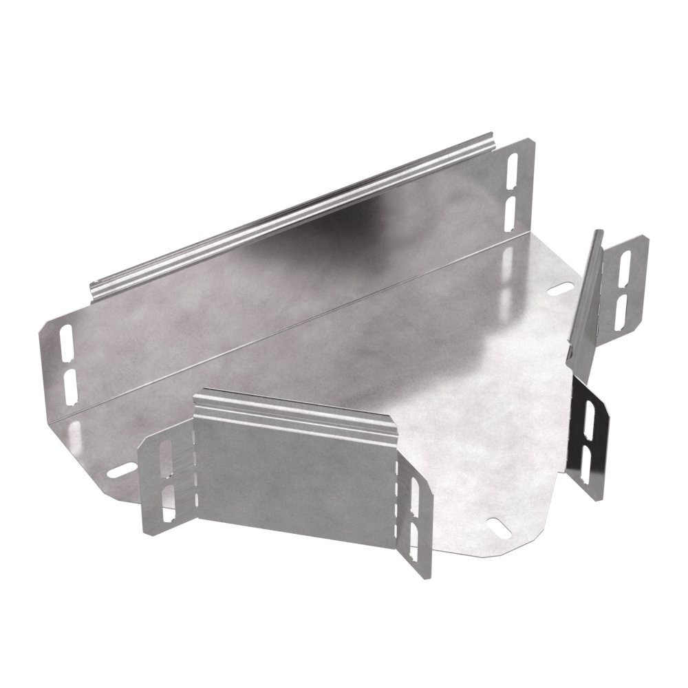 Аксессуары изготовленные из стали с защитным покрытием по методу Сендзимира – это изделия, на которых защитное цинковое покрытие было нанесено на листовую сталь перед изготовлением. Толщина защитного покрытия варьируется от 10 до 22мкм. Климатическое исполнение изделий УХЛ2, что предусматривают эксплуатацию в помещении и под навесом, при температуре эксплуатации от -80 до +150°С. Ответвитель Т-образный предназначен для разветвления кабельных трасс в горизонтальном направлении, для перфорированных и глухих лотков. В комплект не входит крышка.