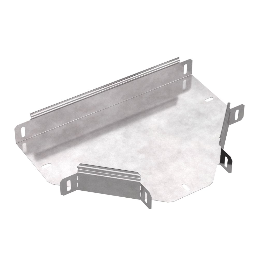 Аксессуары изготовленные из стали с защитным покрытием по методу Сендзимира – это изделия, на которых защитное цинковое покрытие было нанесено на листовую сталь перед изготовлением. Толщина защитного покрытия варьируется от 10 до 22мкм. Климатическое исполнение изделий УХЛ2, что предусматривают эксплуатацию в помещении и под навесом, при температуре эксплуатации от -80 до +150°С. Ответвитель Т-образный предназначен для разветвления кабельных трасс в горизонтальном направлении, для перфорированных и глухих лотков. В комплект не входит крышка.
