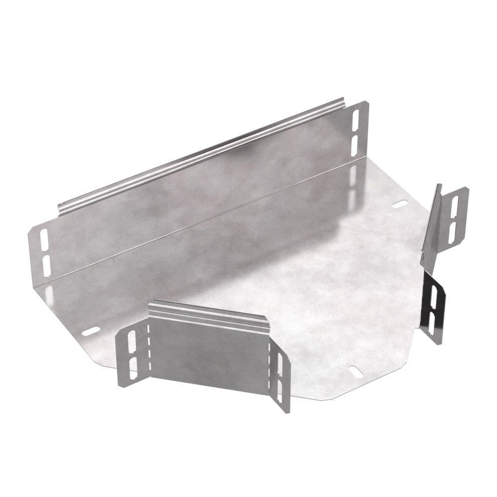 Аксессуары изготовленные из стали с защитным покрытием по методу Сендзимира – это изделия, на которых защитное цинковое покрытие было нанесено на листовую сталь перед изготовлением. Толщина защитного покрытия варьируется от 10 до 22мкм. Климатическое исполнение изделий УХЛ2, что предусматривают эксплуатацию в помещении и под навесом, при температуре эксплуатации от -80 до +150°С. Ответвитель Т-образный предназначен для разветвления кабельных трасс в горизонтальном направлении, для перфорированных и глухих лотков. В комплект не входит крышка.