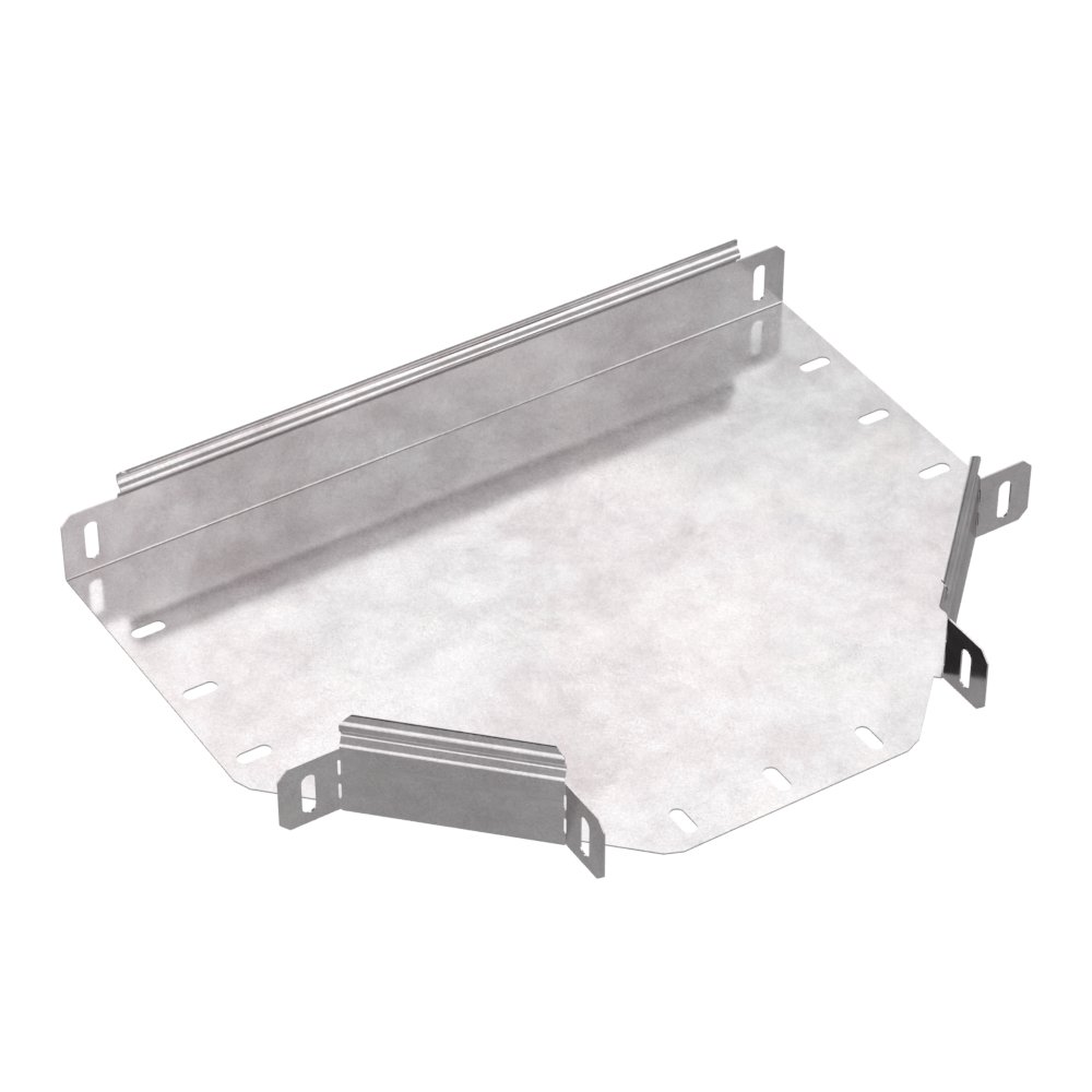 Аксессуары изготовленные из стали с защитным покрытием по методу Сендзимира – это изделия, на которых защитное цинковое покрытие было нанесено на листовую сталь перед изготовлением. Толщина защитного покрытия варьируется от 10 до 22мкм. Климатическое исполнение изделий УХЛ2, что предусматривают эксплуатацию в помещении и под навесом, при температуре эксплуатации от -80 до +150°С. Ответвитель Т-образный предназначен для разветвления кабельных трасс в горизонтальном направлении, для перфорированных и глухих лотков. В комплект не входит крышка.