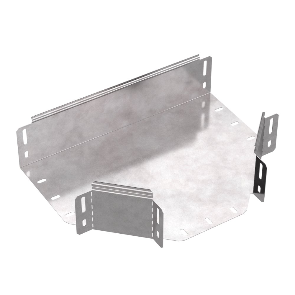 Аксессуары изготовленные из стали с защитным покрытием по методу Сендзимира – это изделия, на которых защитное цинковое покрытие было нанесено на листовую сталь перед изготовлением. Толщина защитного покрытия варьируется от 10 до 22мкм. Климатическое исполнение изделий УХЛ2, что предусматривают эксплуатацию в помещении и под навесом, при температуре эксплуатации от -80 до +150°С. Ответвитель Т-образный предназначен для разветвления кабельных трасс в горизонтальном направлении, для перфорированных и глухих лотков. В комплект не входит крышка.