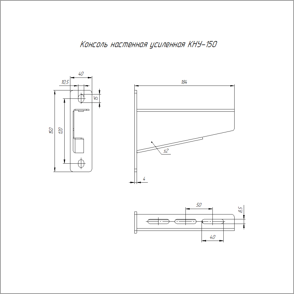 PR08.3653 консоль настенная усиленная КНУ-150 Промрукав; сталь; 182 длина; -80...150 °C; 0,55 кг.