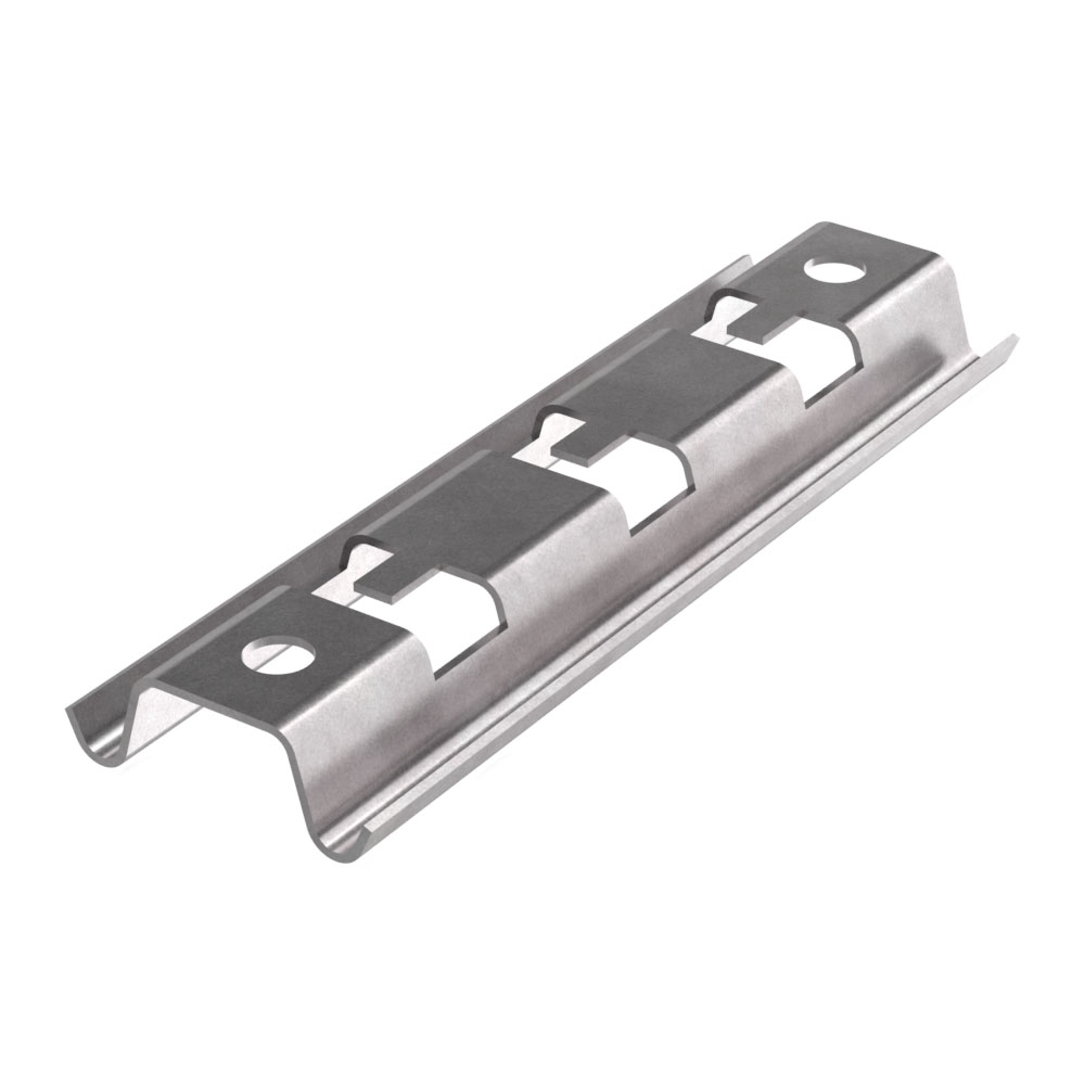 Омега-профиль горизонтальный безвинтовой применяется для подвеса лотка на шпильку. Для фиксации лотка необходимо согнуть лепестки кронштейна шлицевой отверткой.