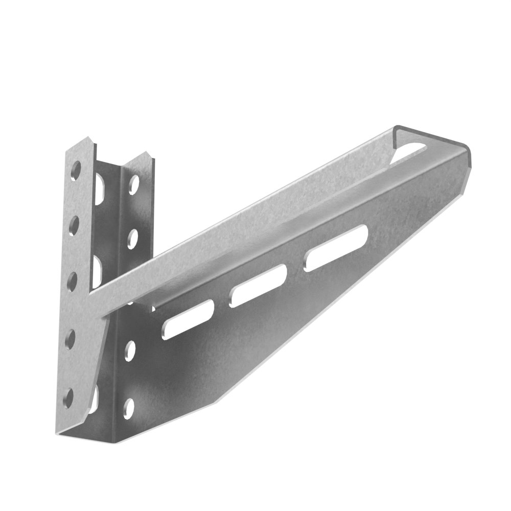 Консоль универсальная многофункциональная - это элемент системы подвеса, который можно использовать как самостоятельное изделие для подвеса лотка вдоль вертикальной опоры крепления,так и при креплении лотка на горизонтальных опорах крепления (потолок, пол) при установки П-образного профиля и П-образной стойки. Также, данная консоль имеет отверстия для крепления лотка на боковой стенки изделия.