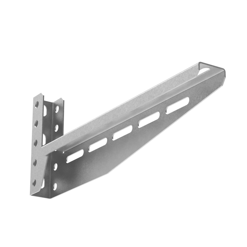 Консоль универсальная многофункциональная - это элемент системы подвеса, который можно использовать как самостоятельное изделие для подвеса лотка вдоль вертикальной опоры крепления,так и при креплении лотка на горизонтальных опорах крепления (потолок, пол) при установки П-образного профиля и П-образной стойки. Также, данная консоль имеет отверстия для крепления лотка на боковой стенки изделия.