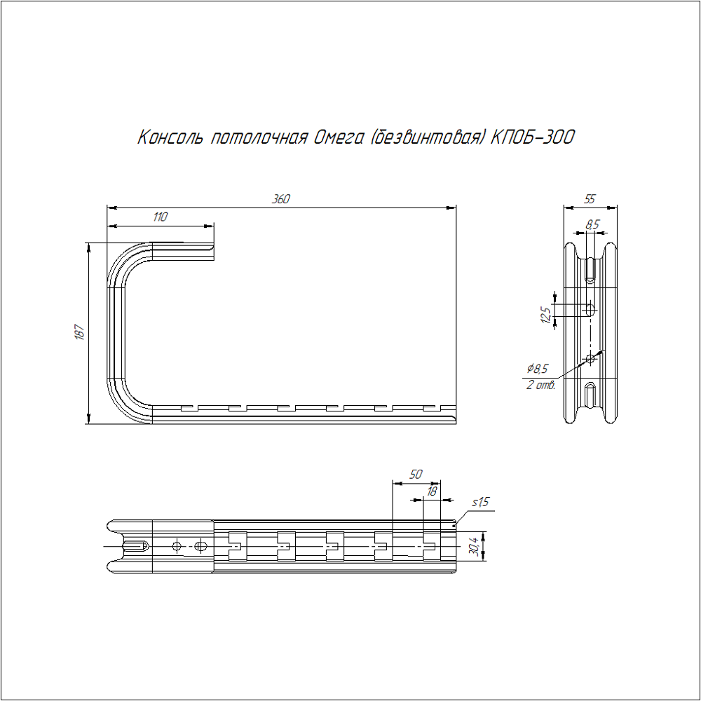 PR16.12067 консоль потолочная Омега (безвинтовая) HDZ КПОБ-300 Промрукав; сталь; -80...280 °C; 0,568 кг/шт.