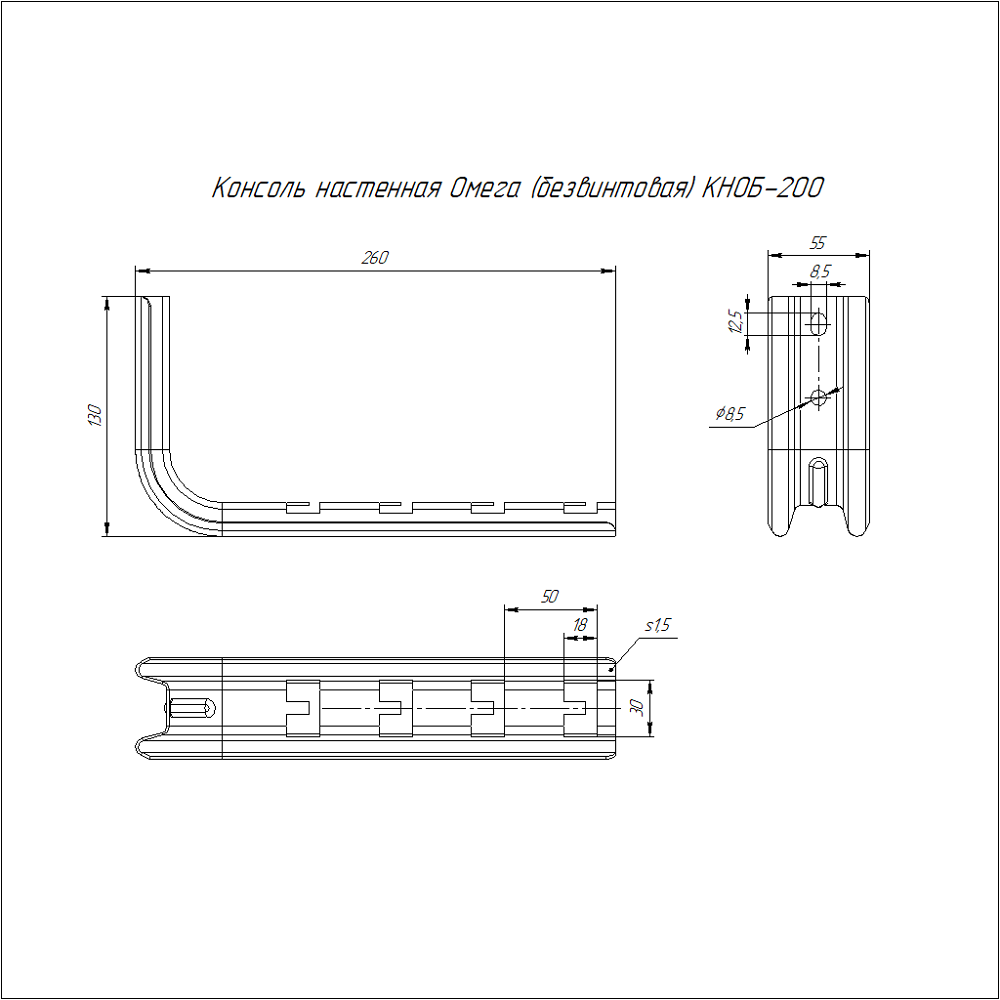 PR16.12058 консоль настенная Омега (безвинтовая) HDZ КНОБ-200 Промрукав; сталь; -80...280 °C; 0,334 кг/шт.