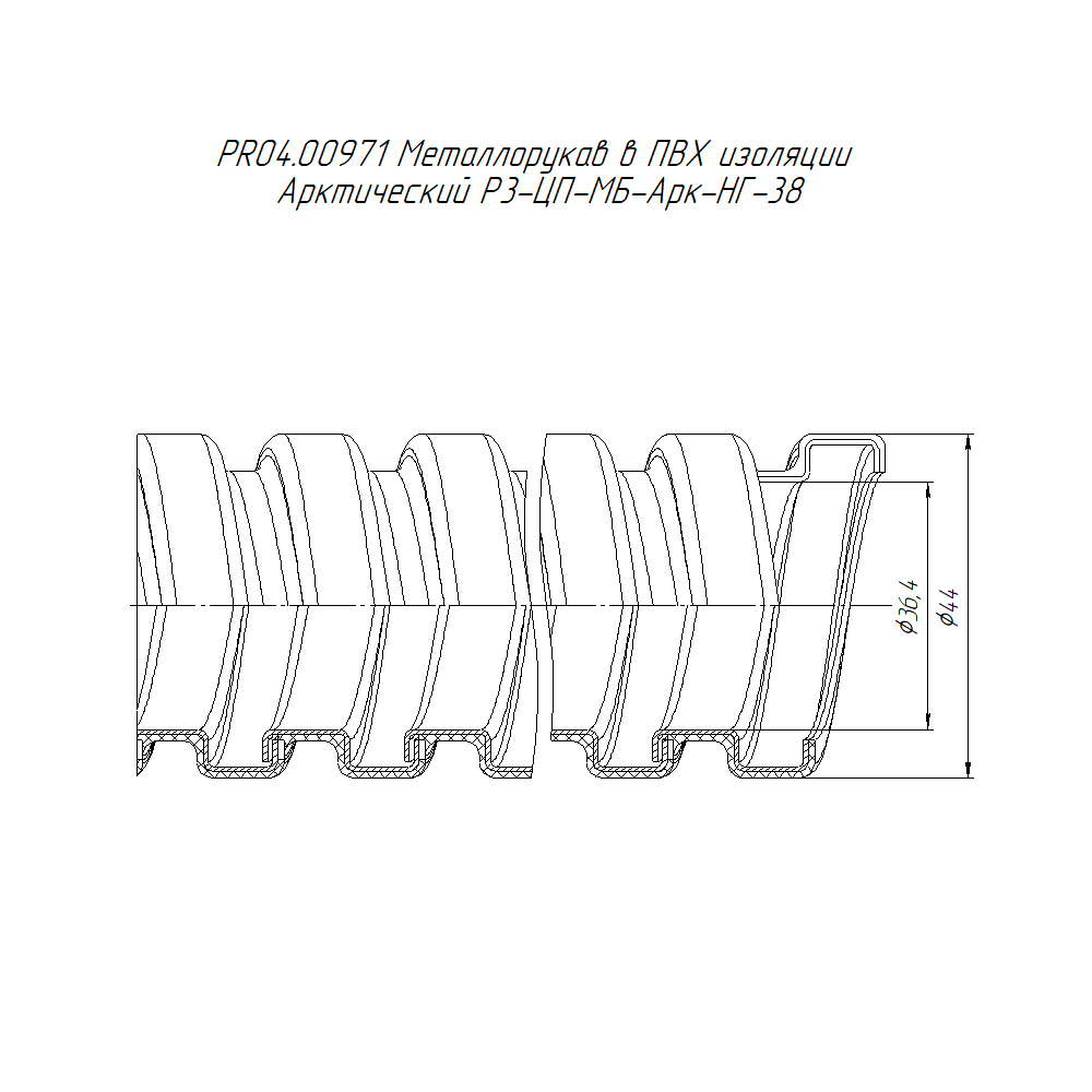 PR04.00971 металлорукав в ПВХ изоляции Р3-ЦП-МБ-А-НГ-38 (25м/уп) Промрукав; оцинк. сталь; IP66; -80..+70°C.; диаметр 38 мм; RAL 9005; 0,53674 кг.