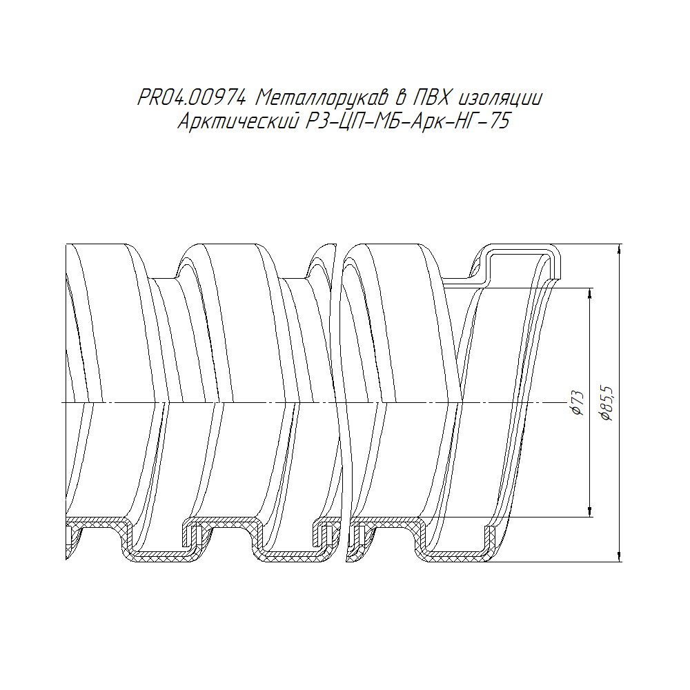 PR04.00974 металлорукав в ПВХ изоляции Р3-ЦП-МБ-А-НГ-75 (8м/уп) Промрукав; оцинк. сталь; IP66; -80..+70°C.; диаметр 75 мм; RAL 9005; 1,49616 кг.
