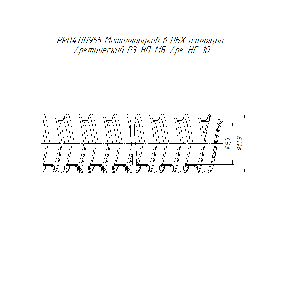 PR04.00955 металлорукав в ПВХ изоляции Р3-НП-МБ-А-НГ-10 (100м/уп) Промрукав; диаметр 10 мм; -80..70°C; RAL 9005; IP66; нерж.сталь; 0,12822 кг.