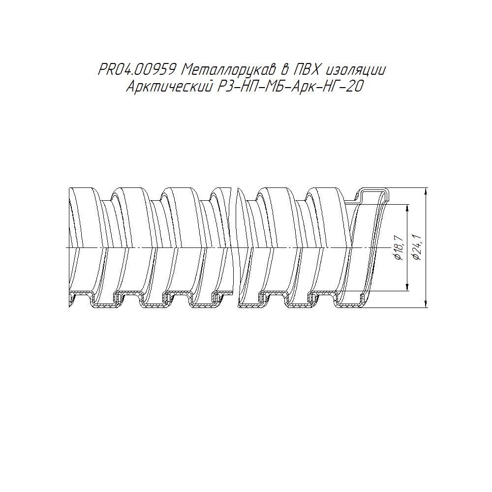 PR04.00959 металлорукав в ПВХ изоляции Р3-НП-МБ-А-НГ-20 (50м/уп) Промрукав; диаметр 20 мм; -80..70°C; RAL 9005; IP66; нерж.сталь; 0,24933 кг.