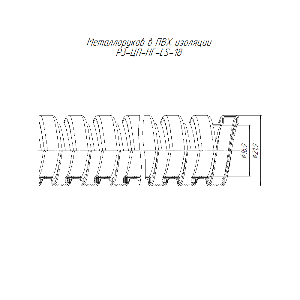 PR04.01099 металлорукав в ПВХ изоляции Р3-ЦП-НГ-LS-18 с/з (50м/уп) Промрукав; оцинкованная сталь; IP66; 750 Н; монтаж -25...90 °C; эксплуатация -40...90 °C; 0,22734 кг/м.