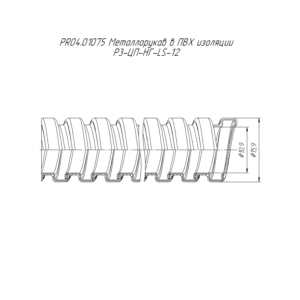 PR04.01075 металлорукав в ПВХ изоляции Р3-ЦП-НГ-LS-12 (100м/уп) Промрукав; оцинкованная сталь; IP66; 750 Н; монтаж -25...90 °C; -40...90 °C; 0,14507 кг/м.