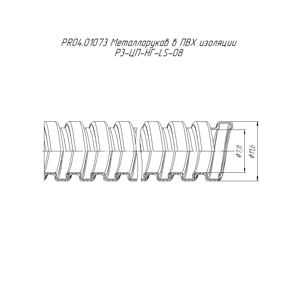 PR04.01073 металлорукав в ПВХ изоляции Р3-ЦП-НГ-LS-08 (100м/уп) Промрукав; оцинкованная сталь; IP66; 350 Н; монтаж -25...90 °C; эксплуатация -40...90 °C; 0,10615 кг/м.
