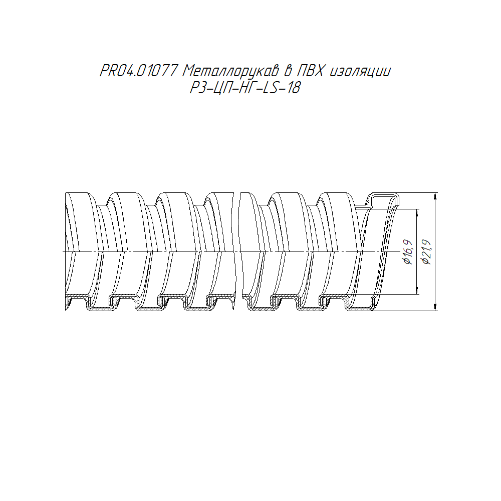 PR04.01077 металлорукав в ПВХ изоляции Р3-ЦП-НГ-LS-18 (50м/уп) Промрукав; оцинкованная сталь; IP66; 750 Н; монтаж -25...90 °C; эксплуатация -40...90 °C; 0,22659 кг/м.