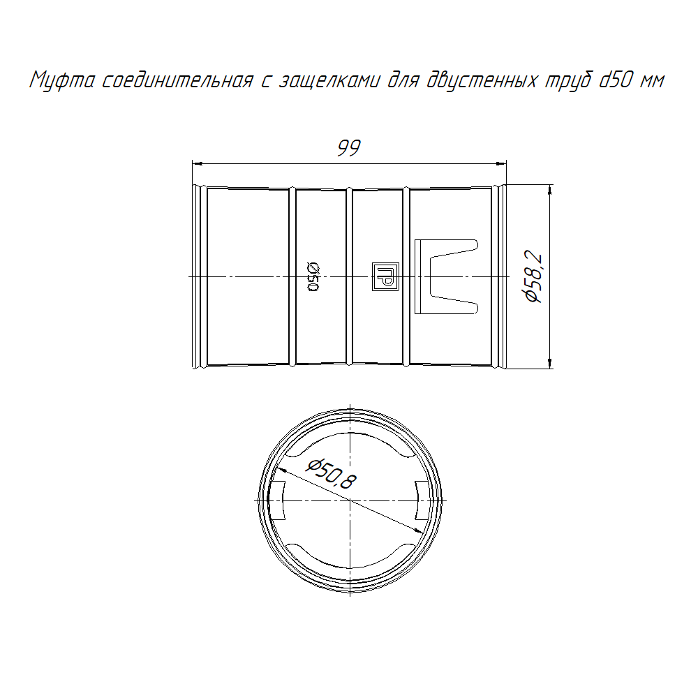 PR08.3108 муфта соединительная для двустенных труб d50 мм Промрукав; диаметр 50 мм; черный; -55..90°C; 0,03323 кг.