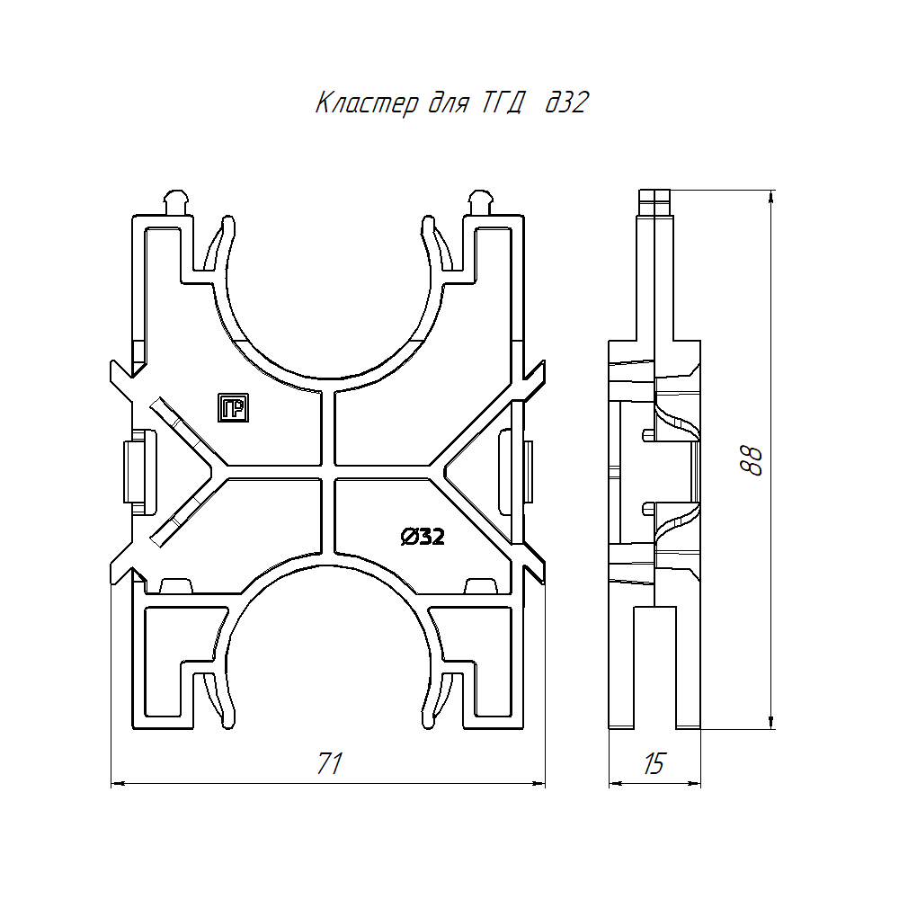 PR13.1125 кластер для двустенных труб d32 мм наборный, двухсторонний (1шт/уп) Промрукав; диаметр 32 мм; RAL 9005; -55..90°C; 0,0178 кг.