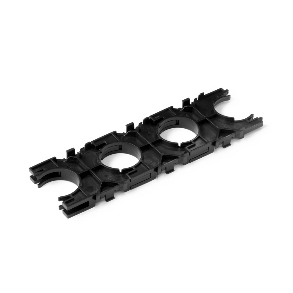 Кластеры предназначены для упорядоченной прокладки двустенных гофрированных труб с фиксированным расстоянием между трубами. При необходимости групповой прокладки Кластеры одного типоразмера соединяются между собой по горизонтали и вертикали.
