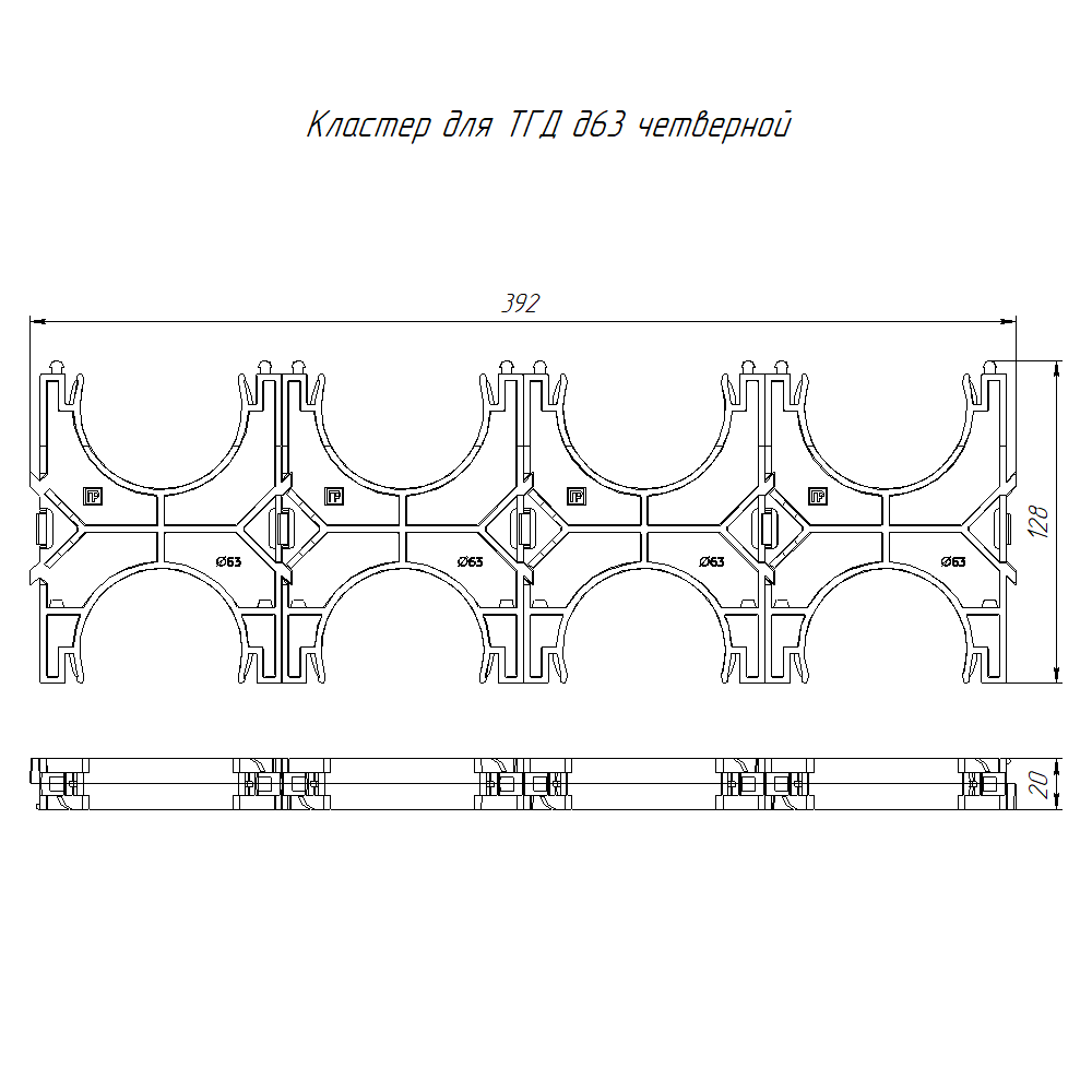 PR13.02588 кластер для двустенных труб d63 мм, четверной, двухсторонний (30 шт/кор) Промрукав; диаметр 63мм; RAL 9005; -55..90°C; 0,17707 кг.