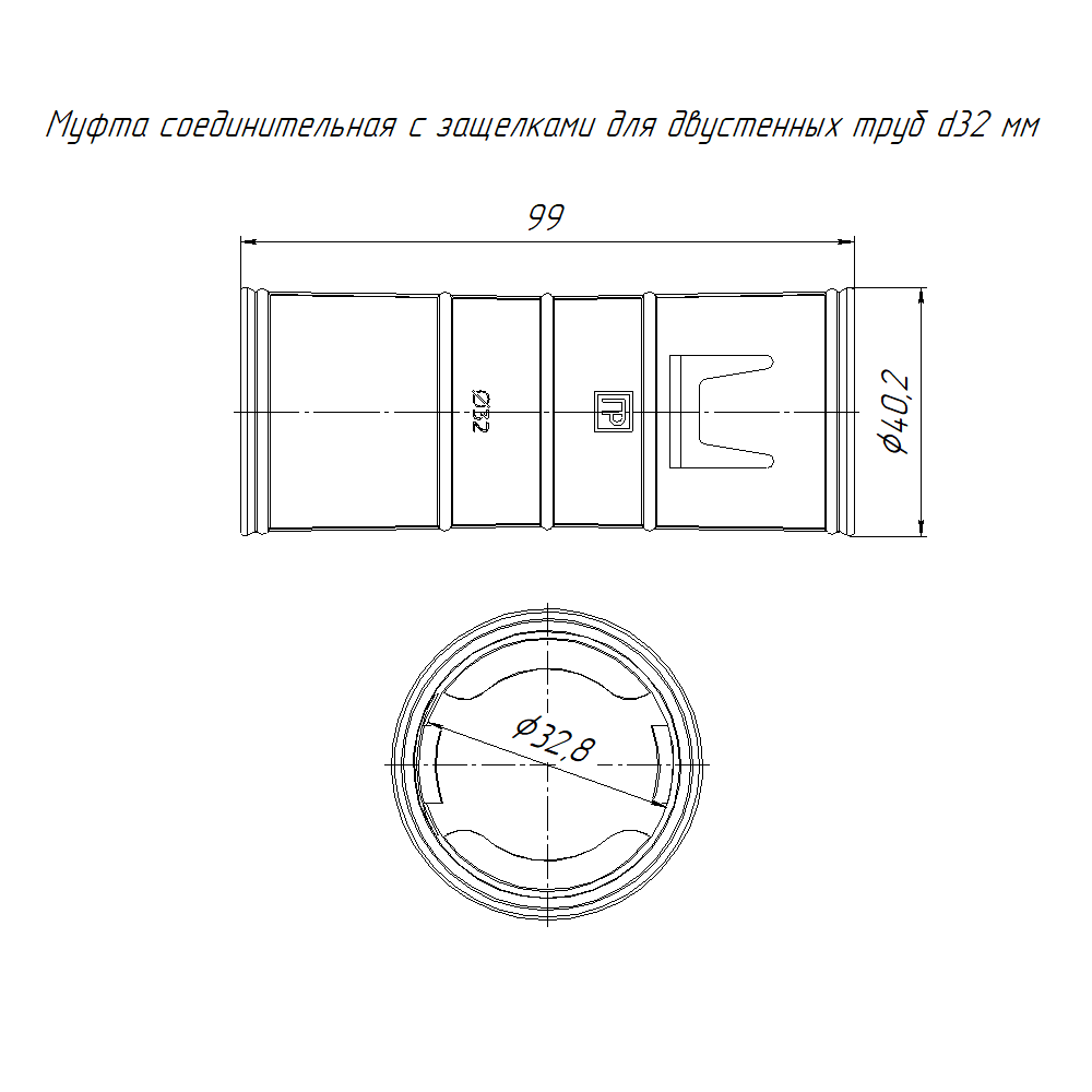 PR13.02827 муфта соединительная с защёлками для двустенных труб d32 мм Промрукав; RAL 9005; -55...90°C; 0,01961 кг.