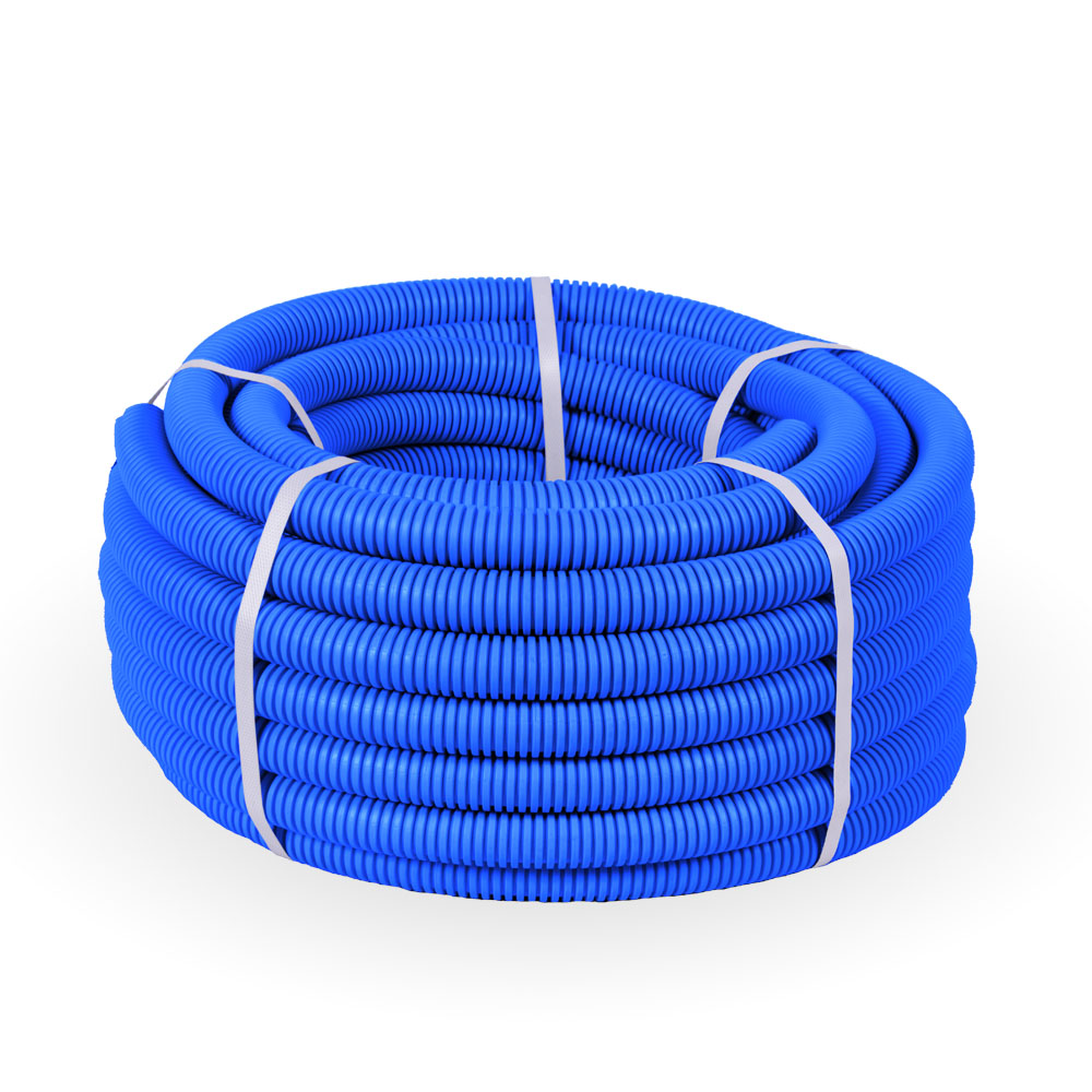 PR02.0057 труба гофрированная ПП тяжёлая 750 Н безгалогенная (HF) синяя с/з d25 мм (50м/2600м уп/пал) Промрукав; полипропилен (PP); диаметр 25 мм; IP66; монтаж -25...60 °C; эксплуатация -45...115 °C; 0,07883 кг.