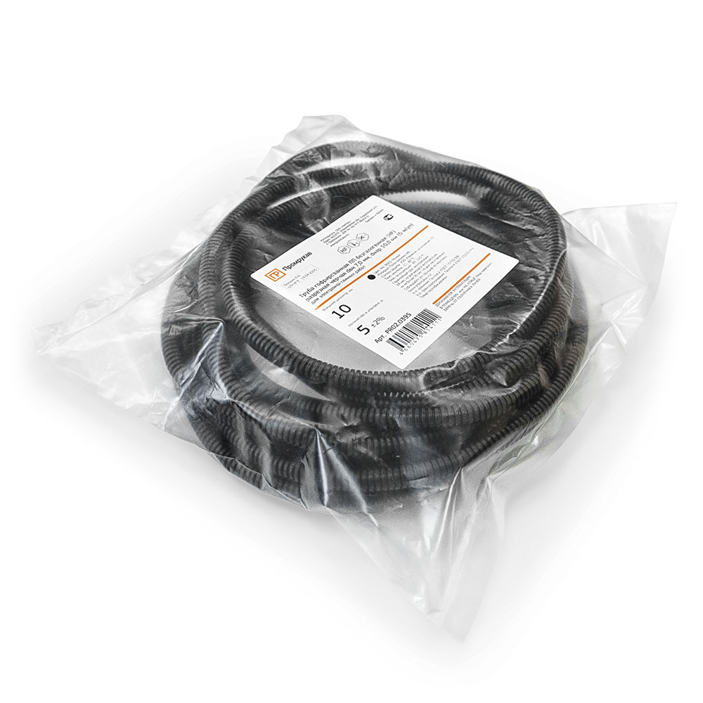 PR02.0395 труба гофрированная ПП легкая безгалогенная (HF) разрезная черная dвн 7,0 мм, dнар 10,0 мм (5м/уп) Промрукав; полипропилен (PP); диаметр 10 мм; IP20; монтаж -25...60 °C; эксплуатация -45...115 °C; 0,02137 кг/м.