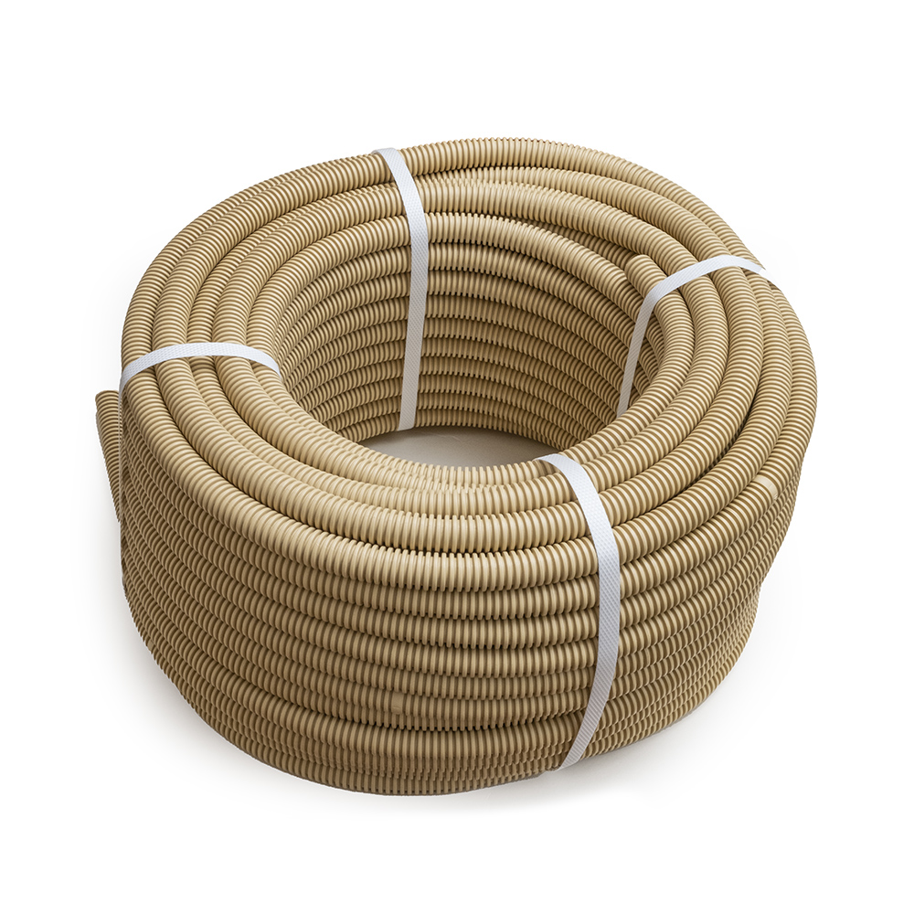 Гофрированная труба из полипропилена предназначена для защиты изолированных проводов и кабелей от механических повреждений и агрессивного воздействия окружающей среды при прокладке сложных систем и трасс, подходит для деревянного домостроения, потому что соответствует требованиям по пожарной безопасности ГОСТ Р (категория горения ПВ-0). Есть возможность размещения на открытом пространстве, так как труба является атмосферостойкой.