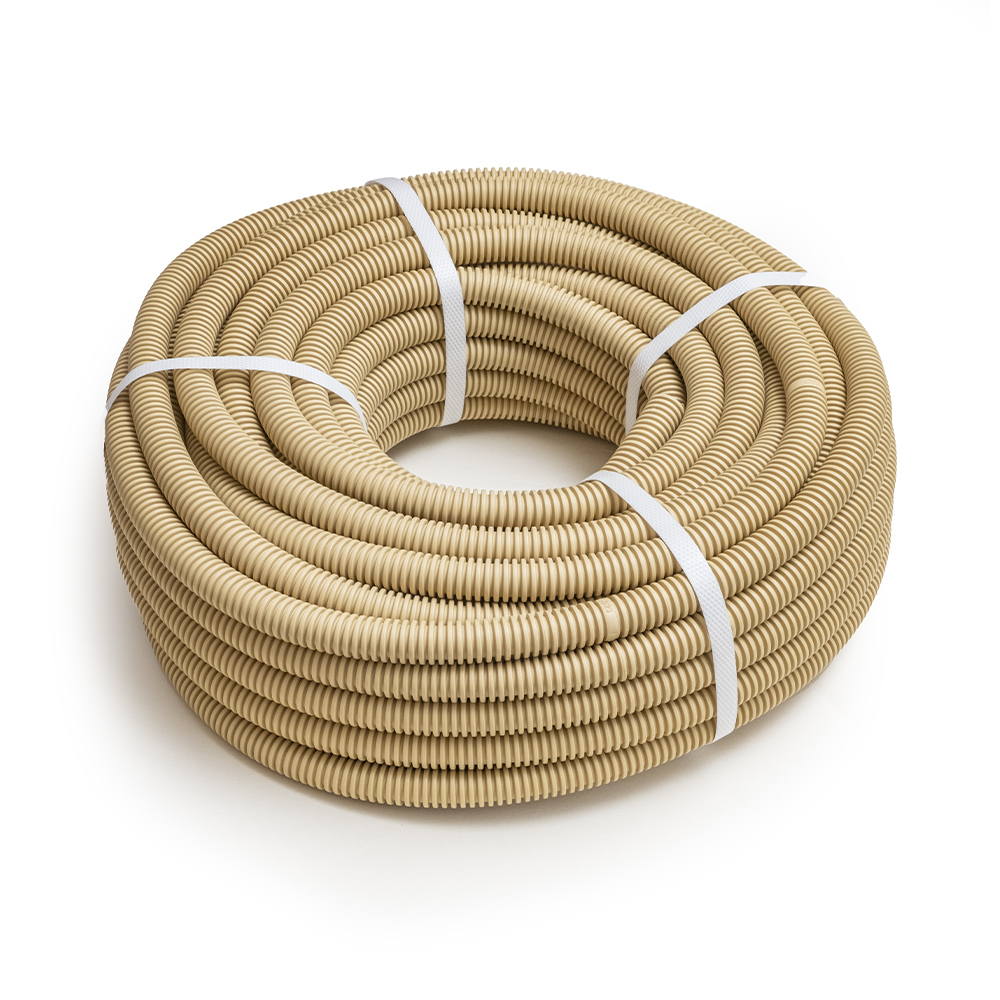 Гофрированная труба из полипропилена предназначена для защиты изолированных проводов и кабелей от механических повреждений и агрессивного воздействия окружающей среды при прокладке сложных систем и трасс, подходит для деревянного домостроения, потому что соответствует требованиям по пожарной безопасности ГОСТ Р (категория горения ПВ-0). Есть возможность размещения на открытом пространстве, так как труба является атмосферостойкой.