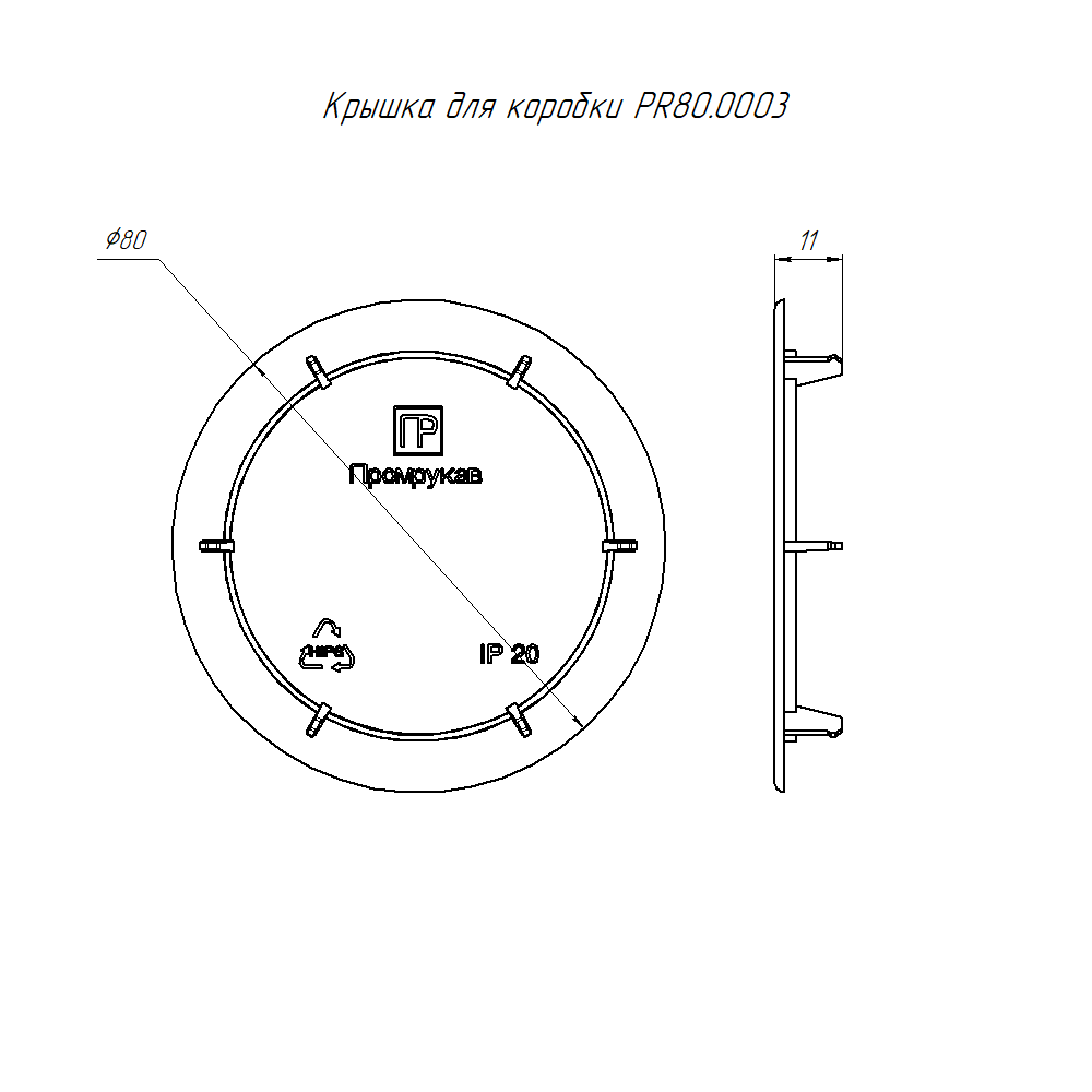 PR80.0003 крышка для коробки распределительной 80-0850 для с/п безгалогенная (HF) 76х42 (415шт/кор) Промрукав; -25..40°C; 0,00943кг.