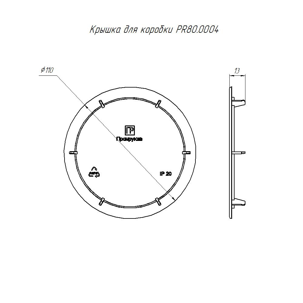 PR80.0004 крышка для коробки распределительной 80-0851 для с/п безгалогенная (HF) 106х42 (180шт/кор) Промрукав; -25..40°C; 0,02052кг.