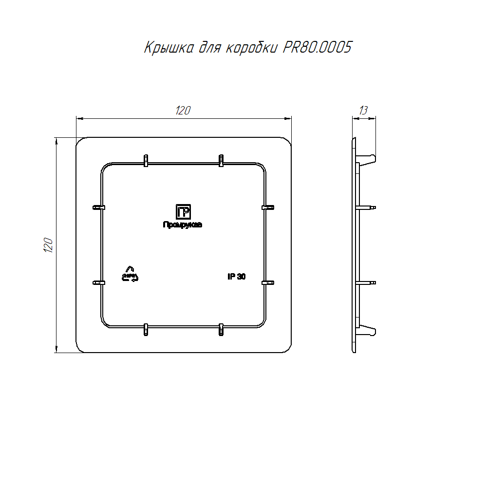 PR80.0005 крышка для коробки распределительной 80-0860 для с/п безгалогенная (HF) 103х103х47 (123шт/кор) Промрукав; -25..40°C; 0,03238кг.
