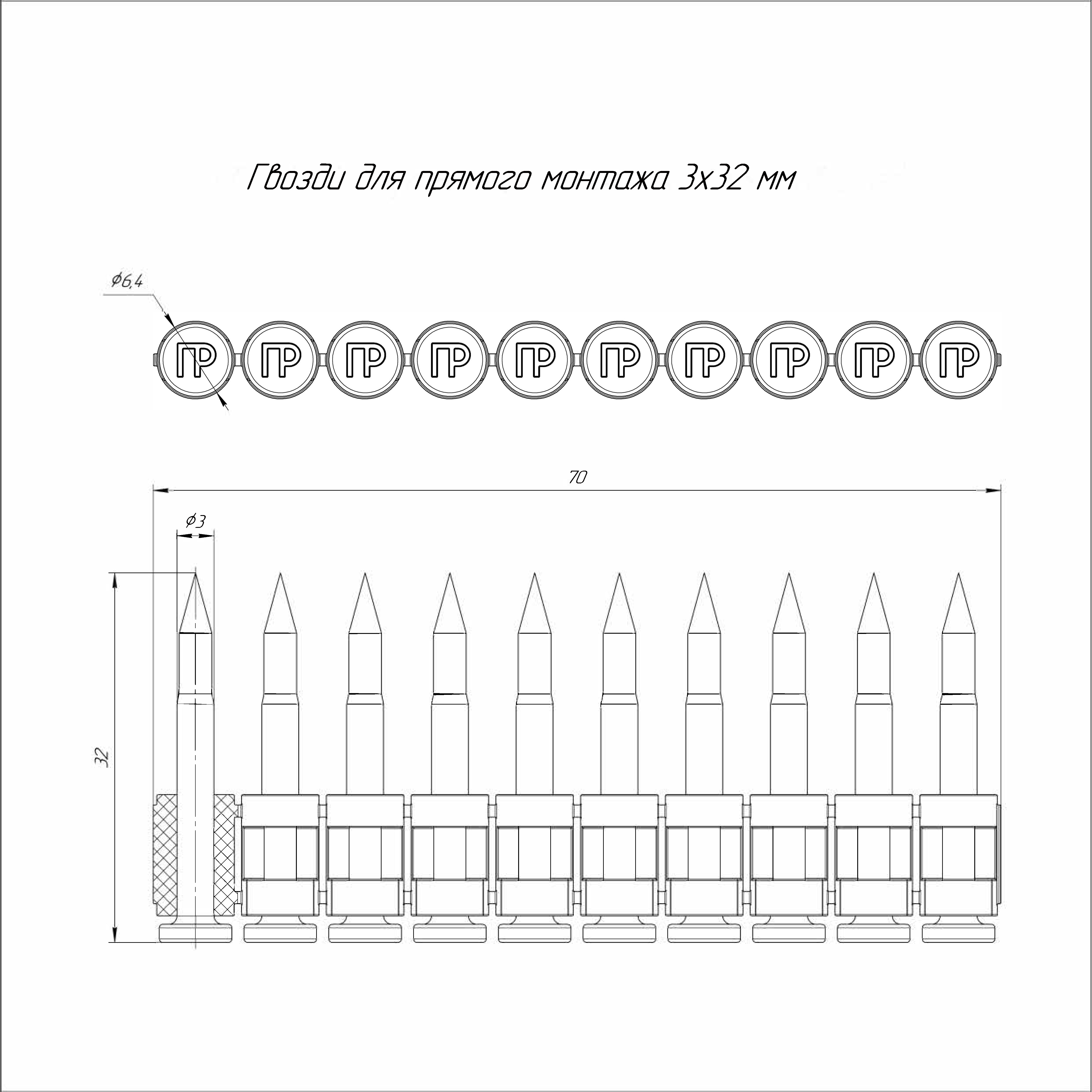 PR08.5812 гвозди для прямого монтажа 3х32 мм (усиленные) (1000 шт/уп) Промрукав; длина 32 мм; диаметр 3 мм; сталь; -80..180°C; 1,777 кг.
