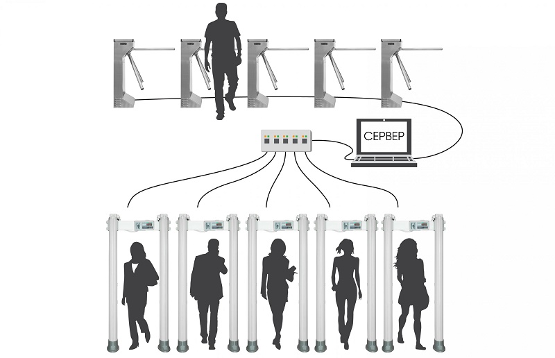 Во время прохода человека через металлодетектор с запрещенным к проносу предметом срабатывает световая и звуковая индикация, информация передается через проводное соединение на турникет (шлюзовую кабину, автоматическую дверь и т. д.), который блокирует дальнейшее движение человека. Если запрещенных к проносу предметов нет, то турникет разрешит доступ.